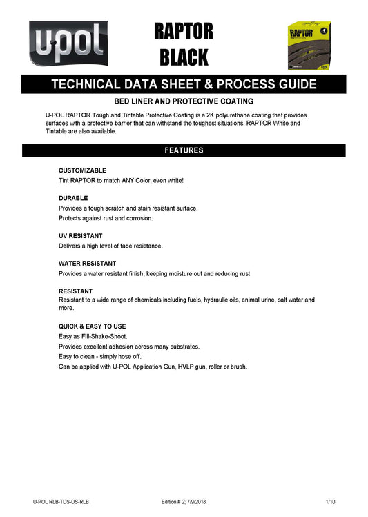 U-POL RAPTOR® Tintable Bedliner Kit – Low VOC (1 US Gallon Kit, 3:1 Mix) Upol
