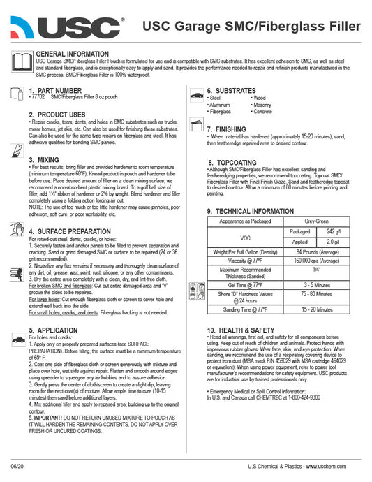 USC® 77702 SMC/Fiberglass Filler – 8 oz Pouch, Waterproof, Gray-Green