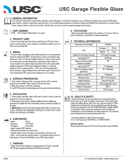 USC® 77705 Garage 2-IN-1 Filler – 8 oz Pouch, White, Liquid (Filler & Glaze Combo)